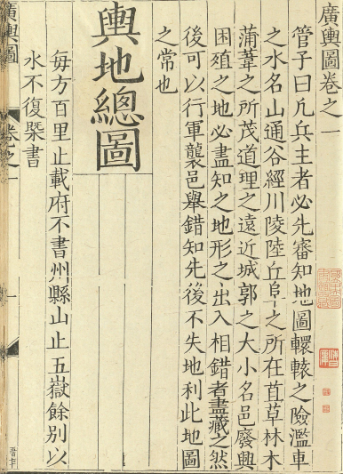 《广舆图》因其精确易得,故成明、清以来诸多传统舆图编绘时所据之底本。《盘舆全览图》我国第一部实测省级(部分)地图集。